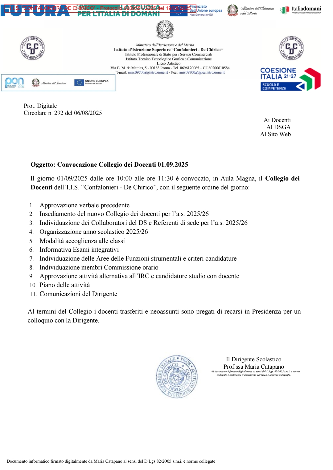 Circolare Convocazione Collegio dei Docenti 01092025